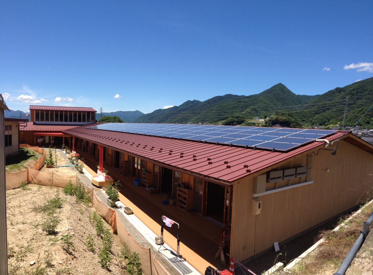 上田市とNPO法人、そして保育園の皆様の環境エネルギーへの熱い思いを受け止め、細心の注意で施工させていただきました。