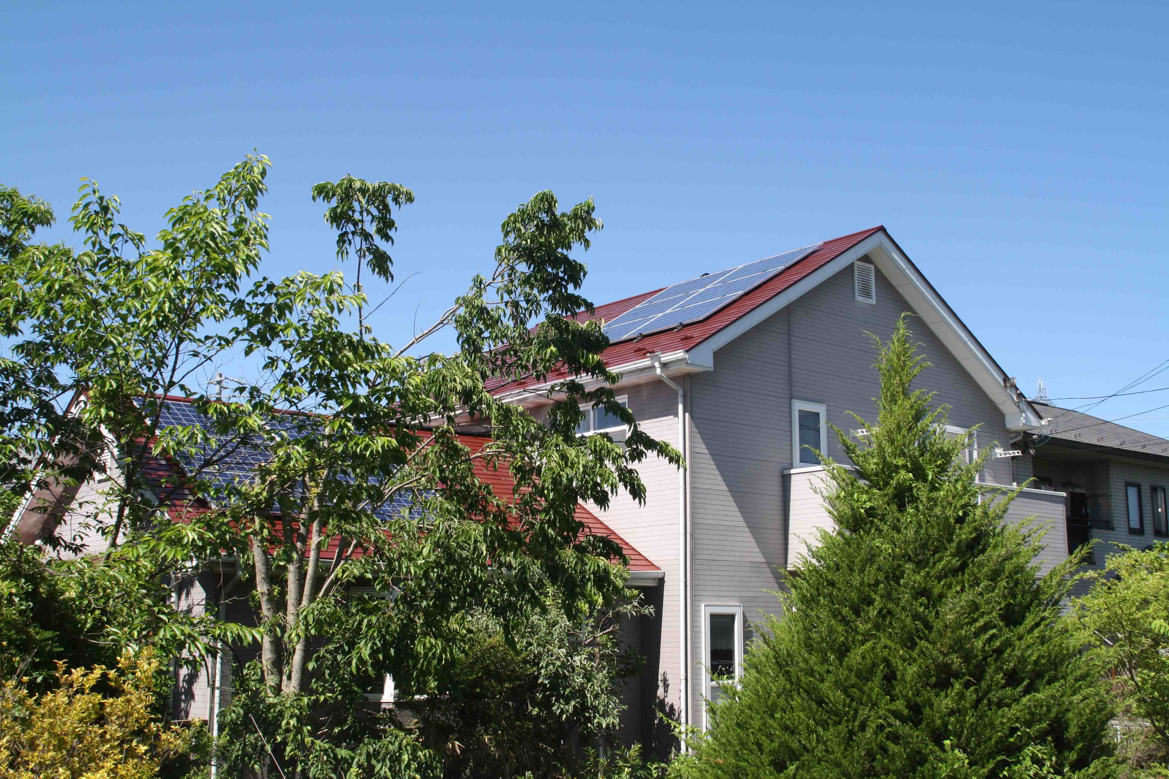 天気も良く、無事に設置終了いたしました。 O様邸はブルーベリー農園などを経営されているお宅で、 緑豊かなお庭に赤い屋根が愛らしいご自宅でした。